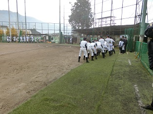 山梨県立山梨高等学校 > 生徒会活動 > 部活動 > 野球 > 野球部練習試合終了 2021年11月22日カテゴリー: 部活動 生徒会活動 野球 野球部練習試合終了 11月21日(日)に今シーズンの練習試合が終了しました。 今年は3月から他校との練習試合を開始しましたが、途中8月には新型コロナウイルスの感染防止のため、他校との交流が一時中止となりました。 しかし、秋には徐々通常に戻り、ほぼ毎週練習試合を行うことができて良かったです。 ここからオフシーズンになりますが、来シーズンに向けて弱点の強化や体づくりを重視した練習を行っていきます。