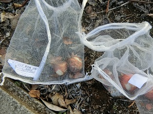 日当たりの良い花壇に穴を掘り、一つずつ置いて土をかぶせました。
