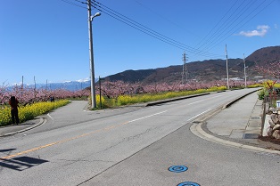 桜は満開を過ぎましたが、学校近くの「かのがわ広場」付近の桃畑では桃の花が見頃を迎えています。