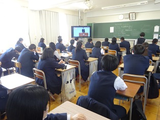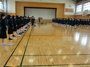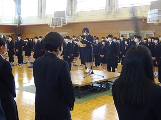 最後に2年生と新入生が向かい合って礼をしました。3年生はHR教室でオンライン視聴しました。
