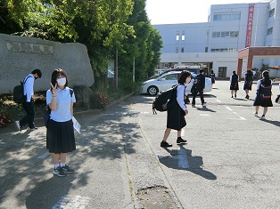 ブレザー、やネクタイ、リボン無しのパターン、また2、3年生はポロシャツで登校する生徒も増えて来ました。