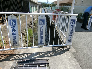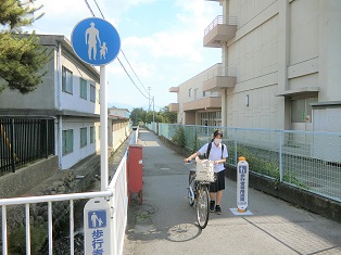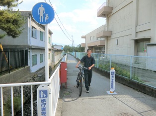 本校グラウンドと加納岩小の間の川沿いの道路は、歩行者専用です。