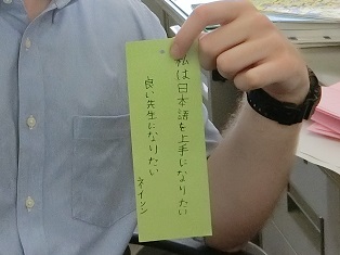 すでにたくさんの願い事が書いてありましたが、ネイソン先生の願い事が一番真面目なものでした。