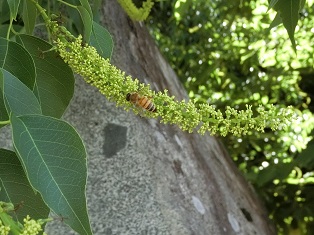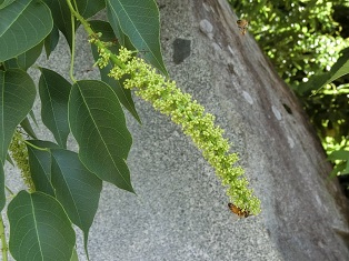 「ナンキンハゼ」の花にハチがたくさん来ています。