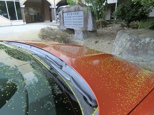 ここに駐車すると短時間でも散った花が積もり、大変なことになります。