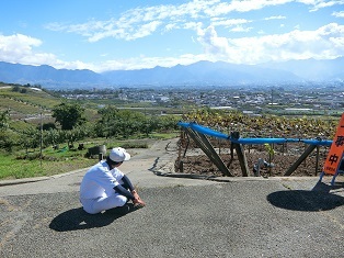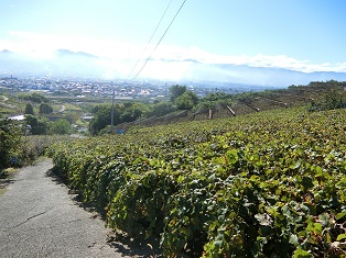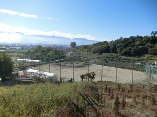 練習にも使っている急坂を少し上って行くと、グラウンドとともに山梨市、甲州市、笛吹市を一望できます。11月に行われる予定の梨窓WALKのコースも近いです。