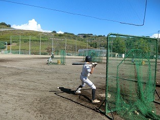 野球部グラウンドは周囲を桃とブドウ畑に囲まれた自然豊かな場所にあります。