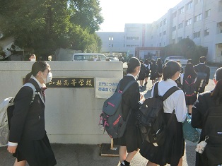 山梨県立山梨高等学校 > 学校から > 創立記念日 2022年10月21日カテゴリー: 学校から 創立記念日 10月23日は本校の創立記念日です。 本校の歴史は1917年(大正6年)に東山梨郡立実科高等女学校から始まり、その後1920(大正9)年に東山梨郡立山梨高等女学校、1922(大正11)年に山梨県立第二高等女学校、1925(大正13)年に山梨県立山梨高等女学校と名称を改めました。 10月23日が創立記念日となった理由は、1925年のこの日に加納岩村新校舎(現在地)に移転して授業が開始されたことに由来しています。それ以前の校舎は、山梨市小原東にある現在の「水の宮公園」付近にあり、そこにはいまでも発祥地の石碑が建てられています。また、現在の「山梨県立山梨高等学校」という名称になったのは、1948(昭和23)年、学制改革をきっかけとした時のことです。 5年前の2017年には節目となる創立100周年の記念式典が挙行され、山梨高校の誇る歴史と伝統が披露されました。「同窓生、在校生、職員が一体となって次の100年に向けての一歩を踏み出すそう」との誓いのもと、山梨高校は今も着実に歩み続けています。