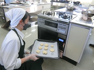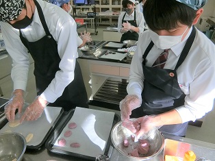 1年生の家庭基礎の調理実習で沖縄の伝統的なお菓子「ちんすこう」を作りました。