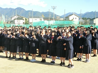 山梨県立山梨高等学校 > 学校から > 3年生集合写真撮影 2022年10月26日カテゴリー: 学校から 3年生集合写真撮影 今日は穏やかな日差しで青空が広がり、秋を感じる穏やかな日です。 3年生が卒業アルバム用の集合写真の撮影を行いました。 いろいろなポーズで何枚も撮影しましたが、まぶしくて大変でした。 出来上がりが楽しみです。