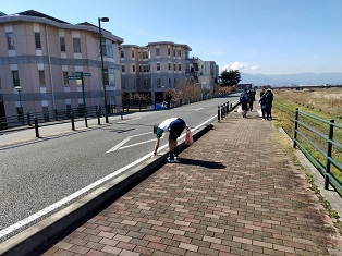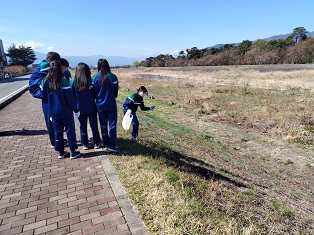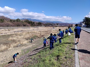 山梨県立山梨高等学校 > 学校から > 地域清掃活動 2023年3月24日カテゴリー: 学校から 地域清掃活動 3月20日(月)に2年生が地域清掃活動を行いました。 クラスごとに根津橋から亀甲橋の間の河川敷を中心にゴミを拾いました。 新芽が出る前の枯草の中からはごみを見つけやすく、きれいになりました。 天気も良く、学校周辺の自然の景色と春を感じることができました。
