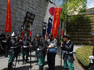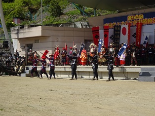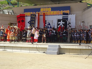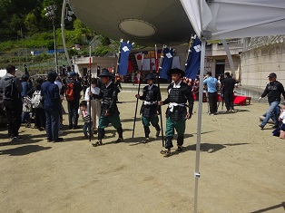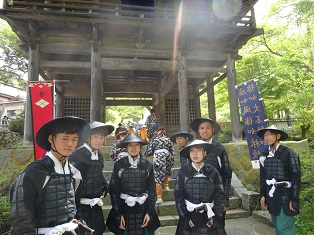 4月23日(日)に旧大和中学校校庭で行われた甲州市ふるさと「武田勝頼公まつり」に7名の生徒が軍団の槍武者と鉄砲隊として参加しました。