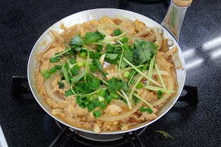 調理室から出汁のいい香りが漂っていました。今日は3年生の選択授業「フードデザイン」で親子丼を作っていたそうです。