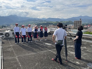 6月21日(水)に地元CATVの番組取材があり、生徒会長をはじめとする生徒たちが選手に応援メッセージを送りました。