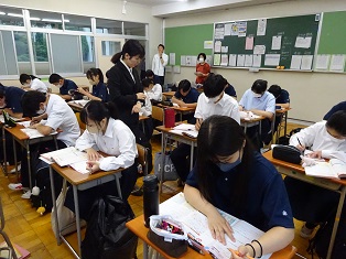 今日は1年生の保健と3年生の体育で研究授業が行われ、先生たちが参観しました。
