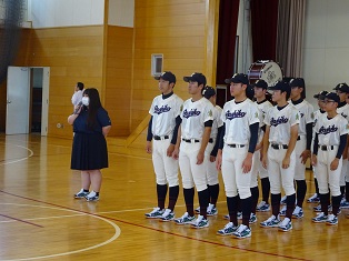 野球部主将の橘田君は「今まで支えてくれた人たちに感謝するとともに、積み重ねてきた努力を一投一打に込めて全力で戦います。」と決意表明をおこないました。