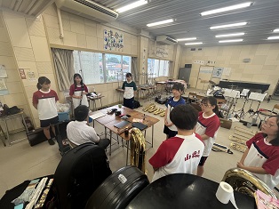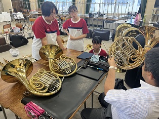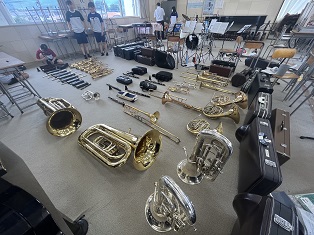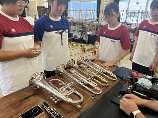 吹奏楽部は1学期コンクールや野球応援、イベントなど様々な演奏の機会が続きましたが、2学期からの練習や演奏活動のために夏休み中に楽器の点検をしてもらうことにしました。