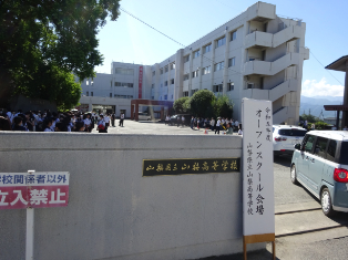 山梨県立山梨高等学校 > 学校から > オープンスクール 2023年8月26日カテゴリー: 学校から オープンスクール 8月26日(土)にオープンスクールを開催し、中学生と保護者、中学校の先生方が参加してくれました。 最初に各担当者が入試や進路指導、コースの説明を行いました。 その後、班に分かれて校内施設見学、部活動の見学・体験を行いました。 案内や誘導は生徒会役員とボランティアスタッフが行いました。 短時間でしたが、梨高の雰囲気など、どんな学校かを少しは知ってもらえたでしょうか。 みなさん、暑い中ありがとうございました。