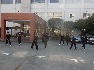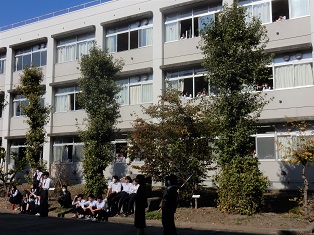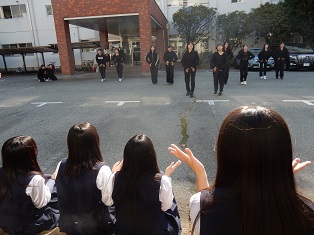 近くで見る生徒も教室の窓から見る生徒も手拍子で応援していました。