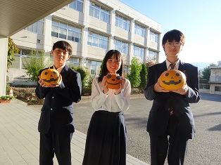 山梨県立山梨高等学校 > 学校から > Happy Halloween 2023年10月31日カテゴリー: 学校から Happy Halloween 今日はハロウィンです。 英語の授業では魔法使いに仮装した生徒と先生がお菓子を配りました。 どのお菓子にしようかと選ぶのに時間がかかっていました。 購買の前には「お菓子もらえるかな?」と思って見に来た生徒がいましたが、残念ながらお菓子はありませんでした。