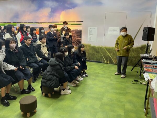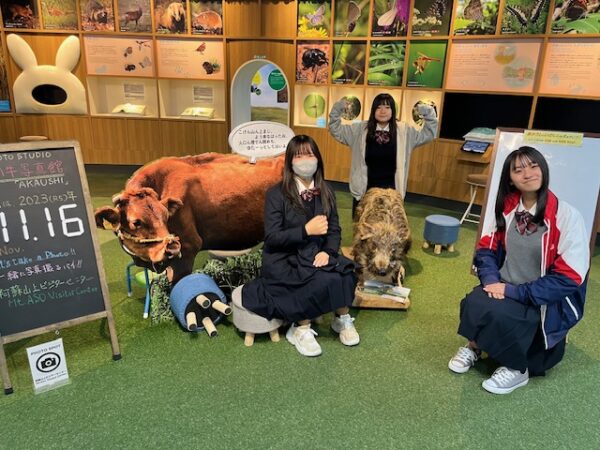 山梨県立山梨高等学校 > 学校から > 修学旅行3日目見学 2023年11月16日カテゴリー: 学校から 修学旅行3日目見学 熊本県阿蘇に来ました。阿蘇火山博物館の屋外で星を観察する予定でしたか、小雨のため、館内で星の話や阿蘇の自然についてお話しを聞いています。