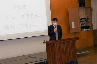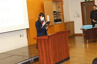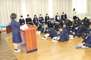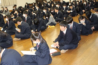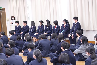 3年生は卒業が近づいて来ました。すでに進学、就職に進路が決まった3年生が後輩たちに話をしてくれました。