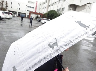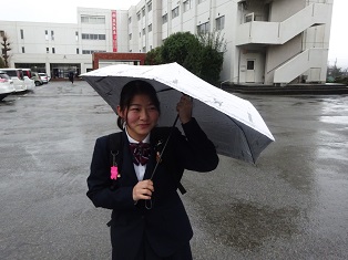 その中で「ネコ柄」の傘をさしている生徒を見つけました。