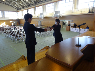 山梨県立山梨高等学校 > 学校から > 礼法練習 2024年2月28日カテゴリー: 学校から 礼法練習 3月1日(金)は卒業式です。 みんなの協力で会場準備がほぼ終わりました。 2月28日(水)に代表となる生徒たちが礼法の練習を行いました。 29日(木)には授賞式と卒業式予行および同窓会入会式が行われます。 卒業生の晴れの日がすばらしいものになるようにみんなががんばっています。