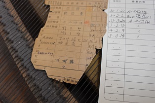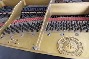 ヤマハの「コンサートグランドピアノFC」という製品で、今から67年前に納入されたものです。使われなくなり、調律カードの履歴を見ると一時期放置された時期もありましたが、数年前に時間をかけて整備を行い、普通に弾けるまでの状態にしてもらいました。